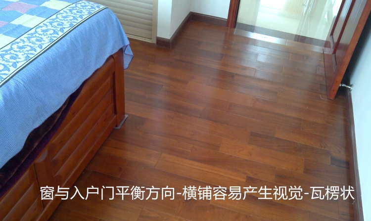 如果看到横铺的地板,由于透视的原因,木地板横向的瓦楞状集中起来,容易看到波浪形,一楞一楞的,再加上一般窗子与门相对,光线由窗射入,加大了这种感觉,看下图。