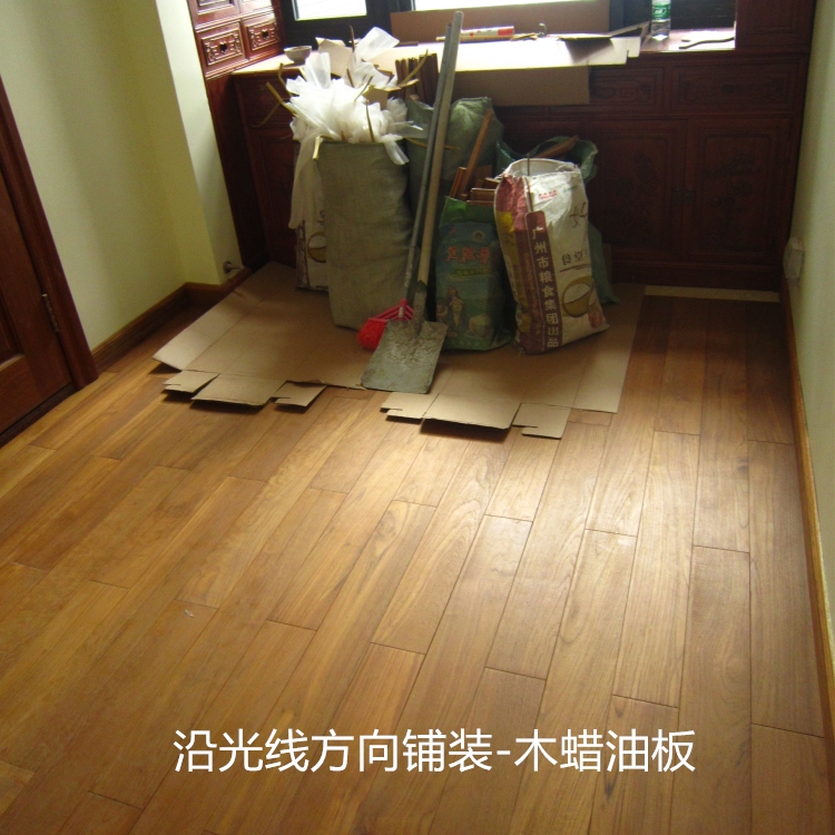木地板是长条拼装,纵向变形少,横向变形较大,两块地板常形成瓦楞状,一般从门口往里看,看到纵向条文比较美观。