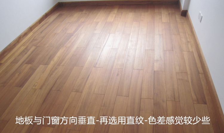 以客厅的长边走向为铺贴方向,如果客厅铺柚木的话,那么其他的房间也跟着客厅方向铺;